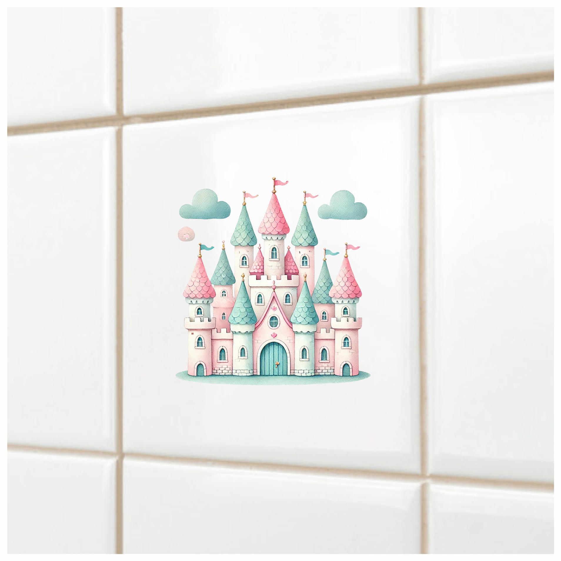 Castle Pink Green Clouds Vinyl Sticker Decal