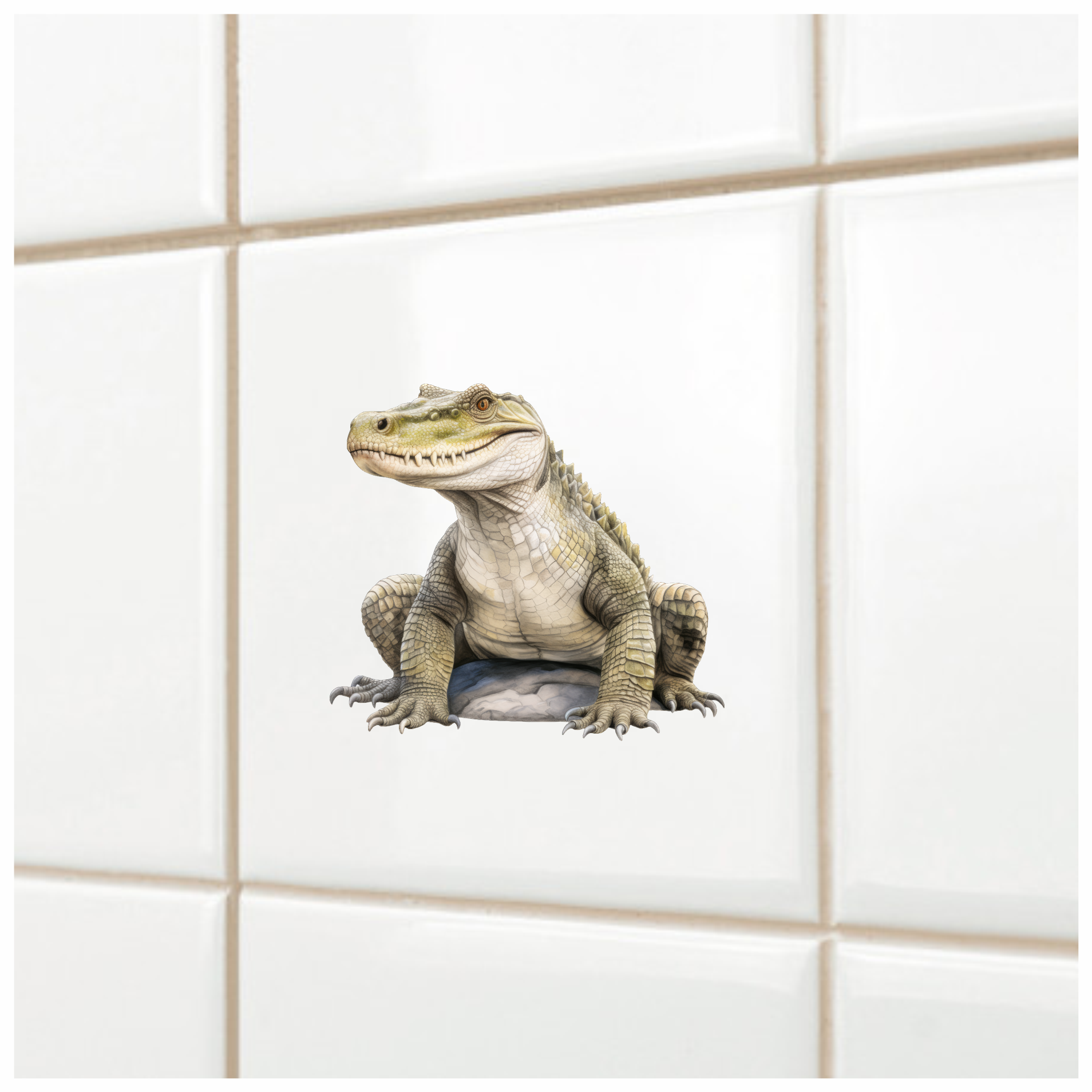 Crocodile Green Scales Sitting Rock Vinyl Sticker Decal