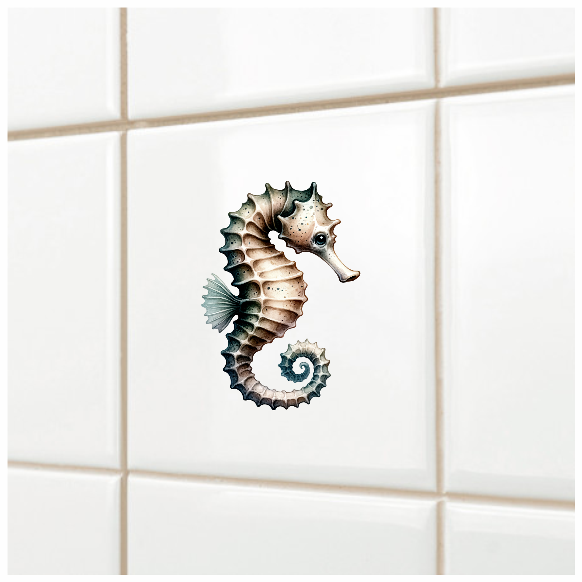 Seahorse Brown White Spiral Tail Vinyl Sticker Decal