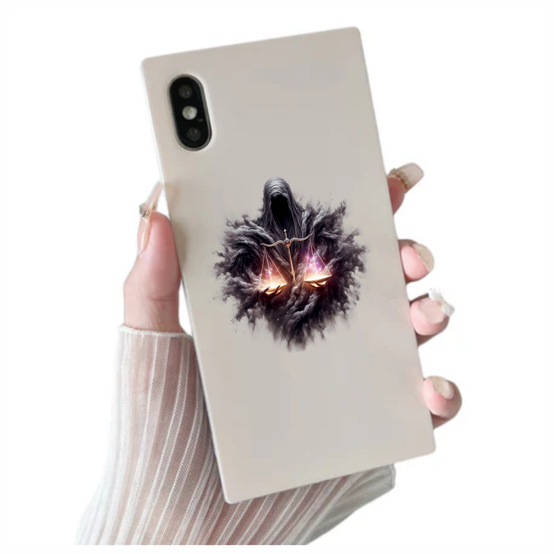 Dark Hooded Figure Holds Golden Scales Vinyl Decal Sticker