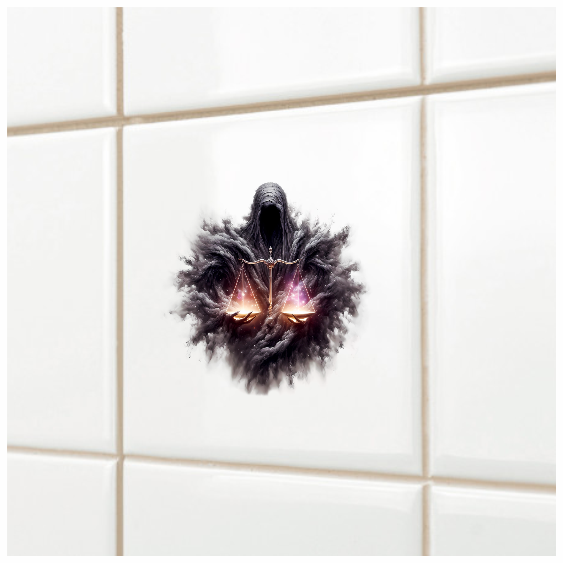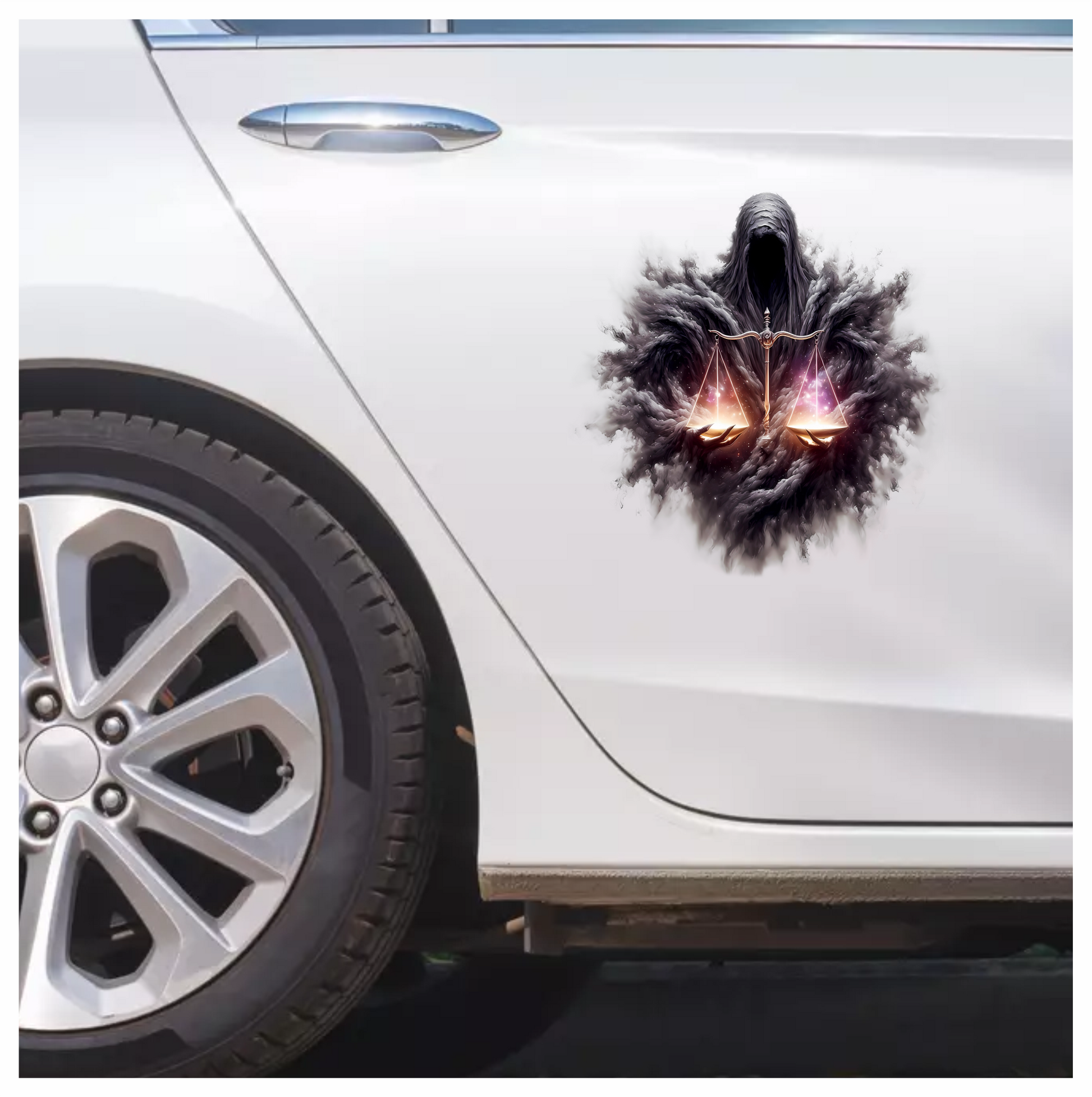Add a striking edge to your belongings with the Dark Hooded Figure Holds Golden Scales Vinyl Decal Sticker. This powerful design captures attention with its bold imagery, perfect for laptops, water bottles, or notebooks. Crafted from durable vinyl, it ensures vivid color and easy application without residue. Express your unique style and gravitas with this captivating decal.