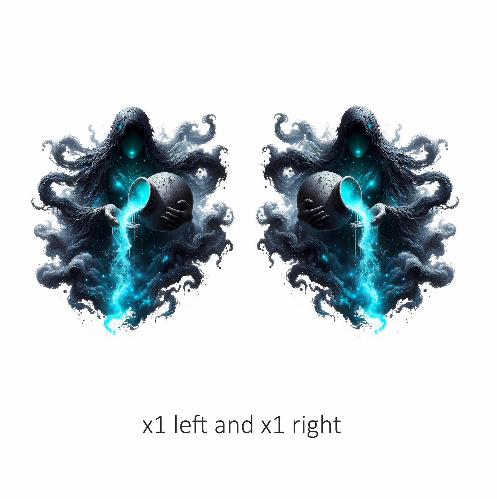 Dark Hooded Spirit Pouring Blue Liquid Vinyl Decal Sticker