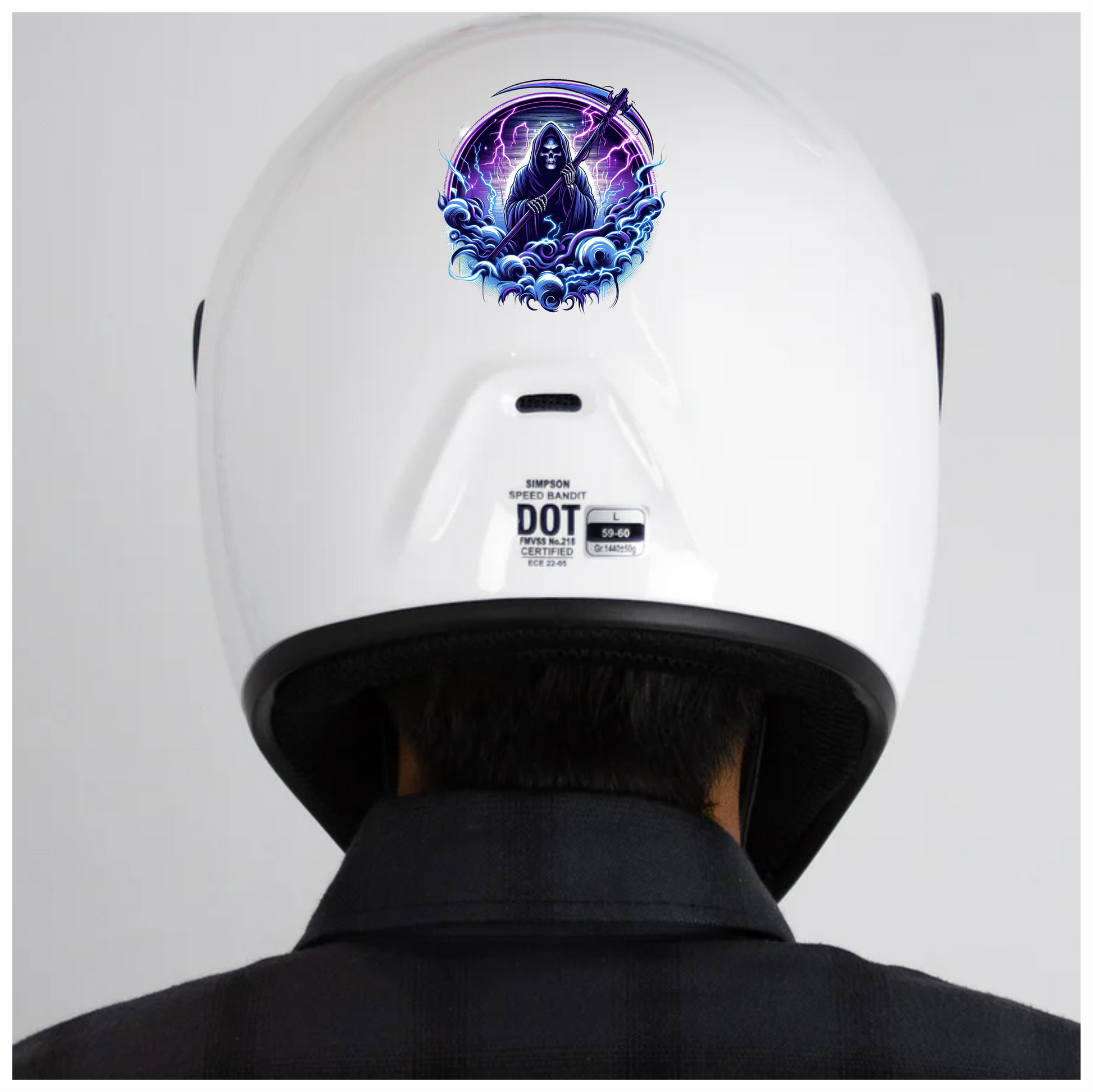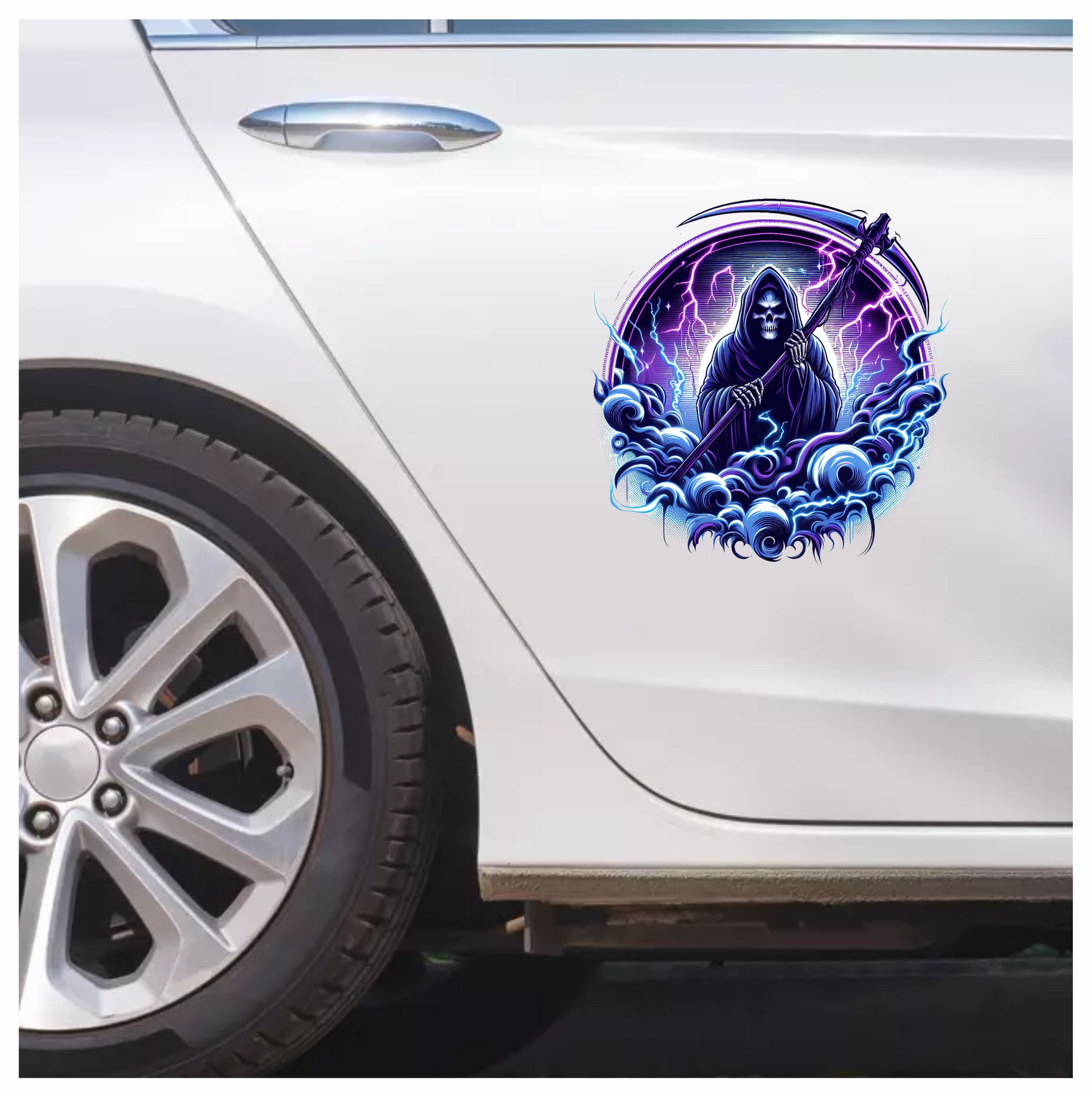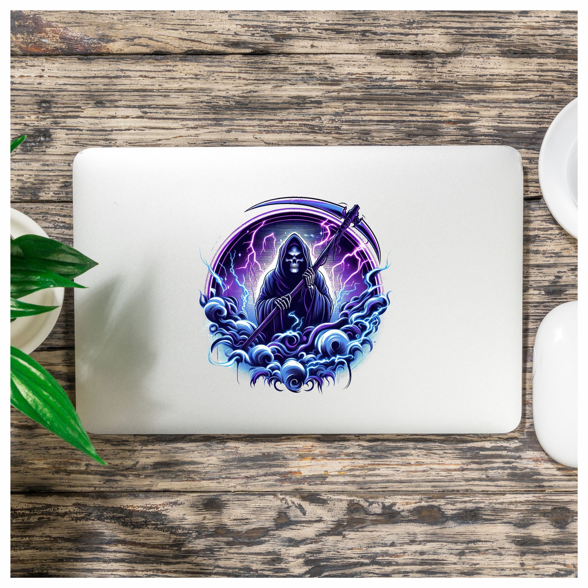 Skeleton, Scythe, Purple, Lightning, Clouds, Vinyl Sticker Decal