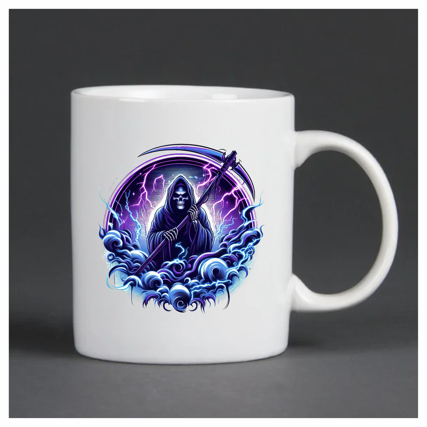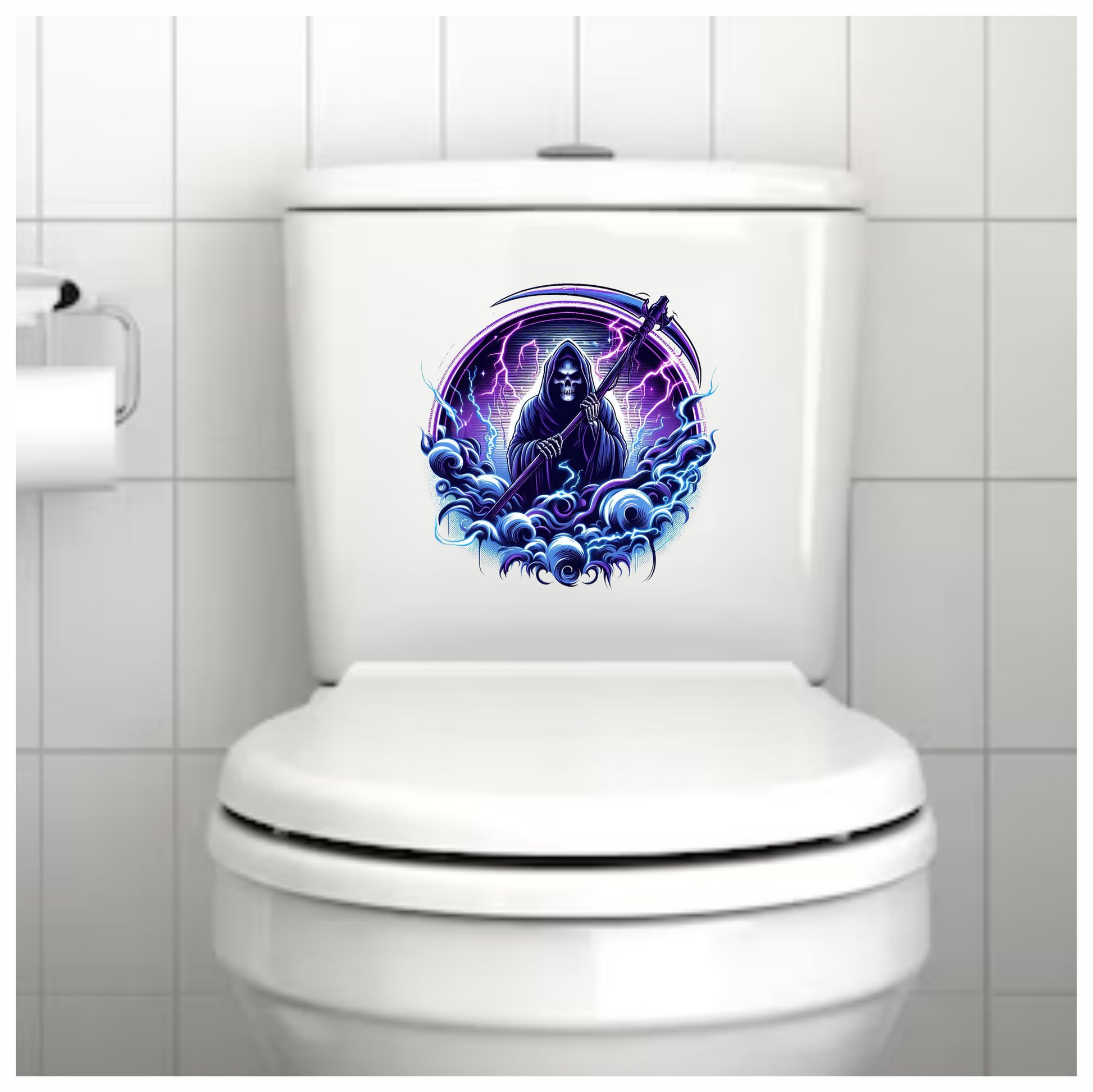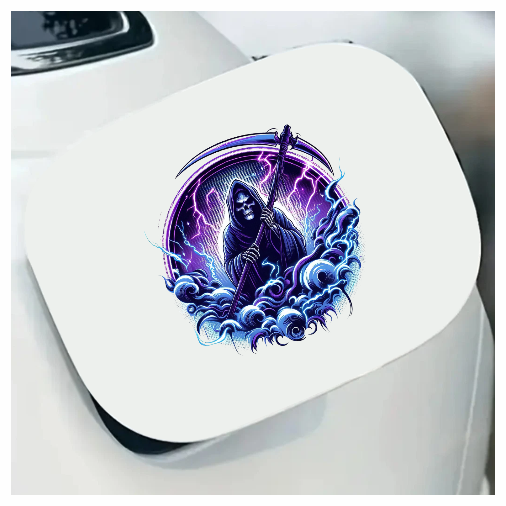 Skeleton, Scythe, Purple, Lightning, Clouds, Vinyl Sticker Decal