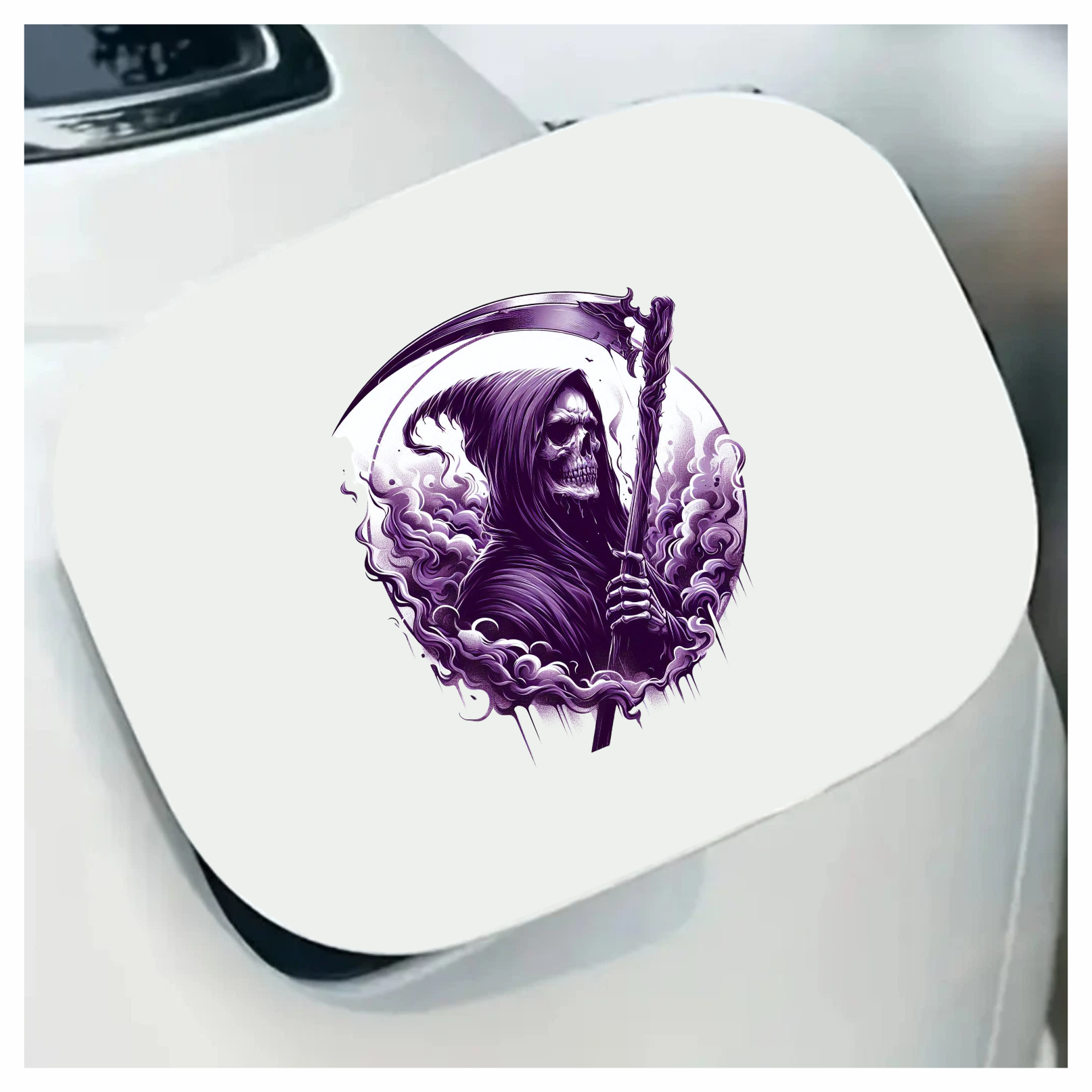 Grim Reaper Skull Purple Smoke Scythe Dark Vinyl Sticker Decal