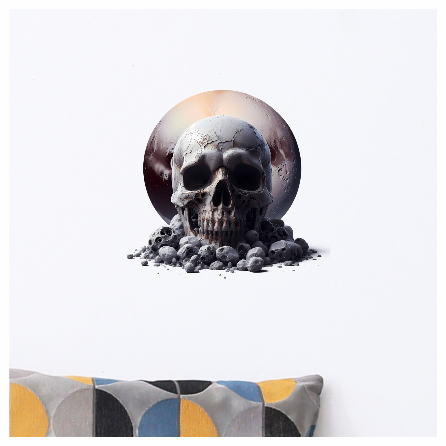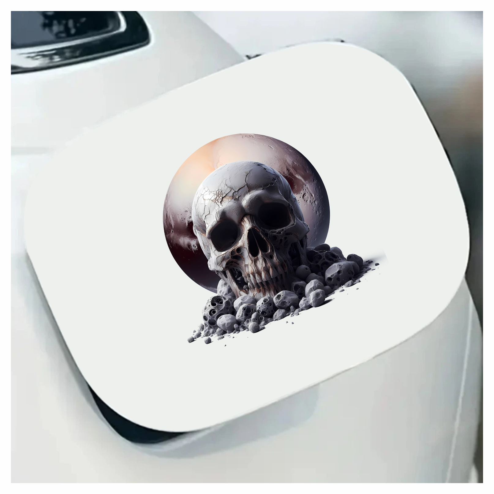 Skull Moon Rocks Cracked White Vinyl Sticker Decal