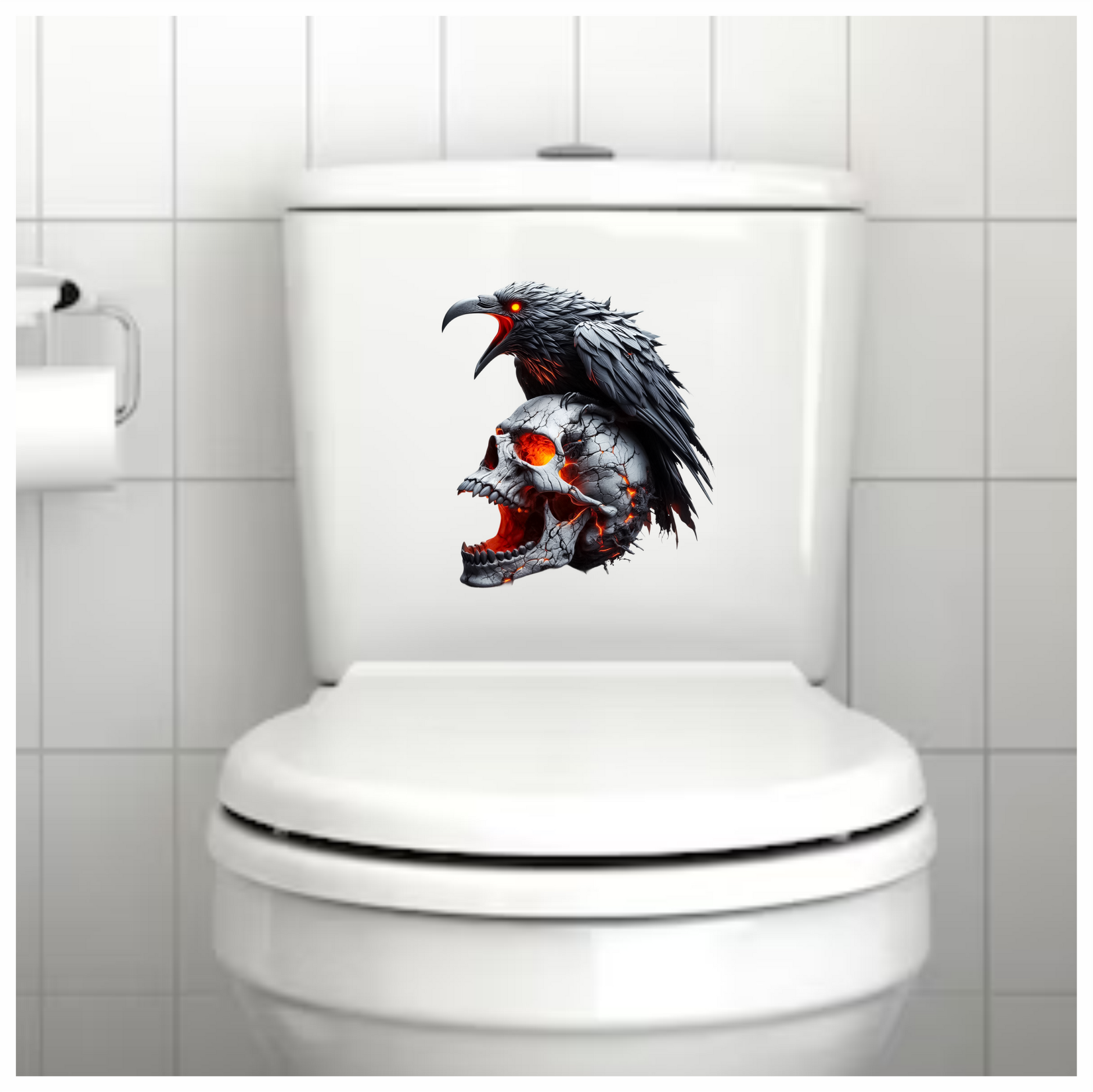 Raven Skull Cracks Red Glow Vinyl Sticker Decal