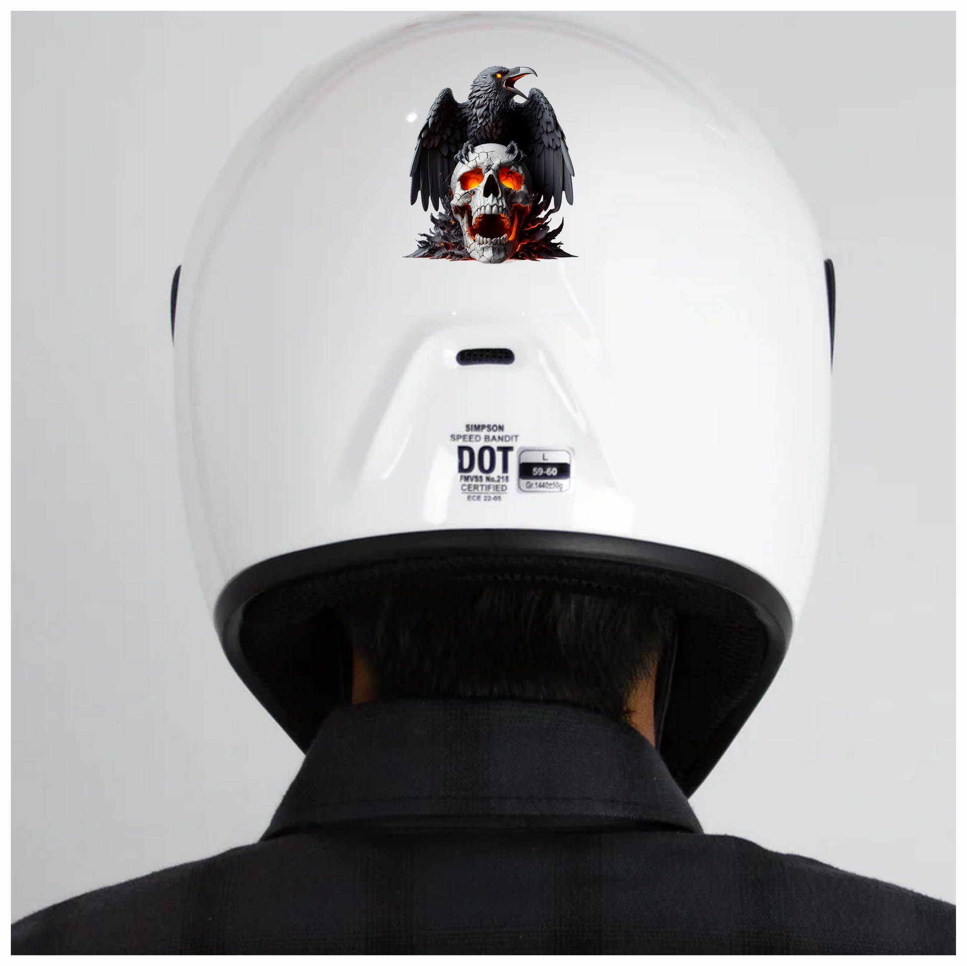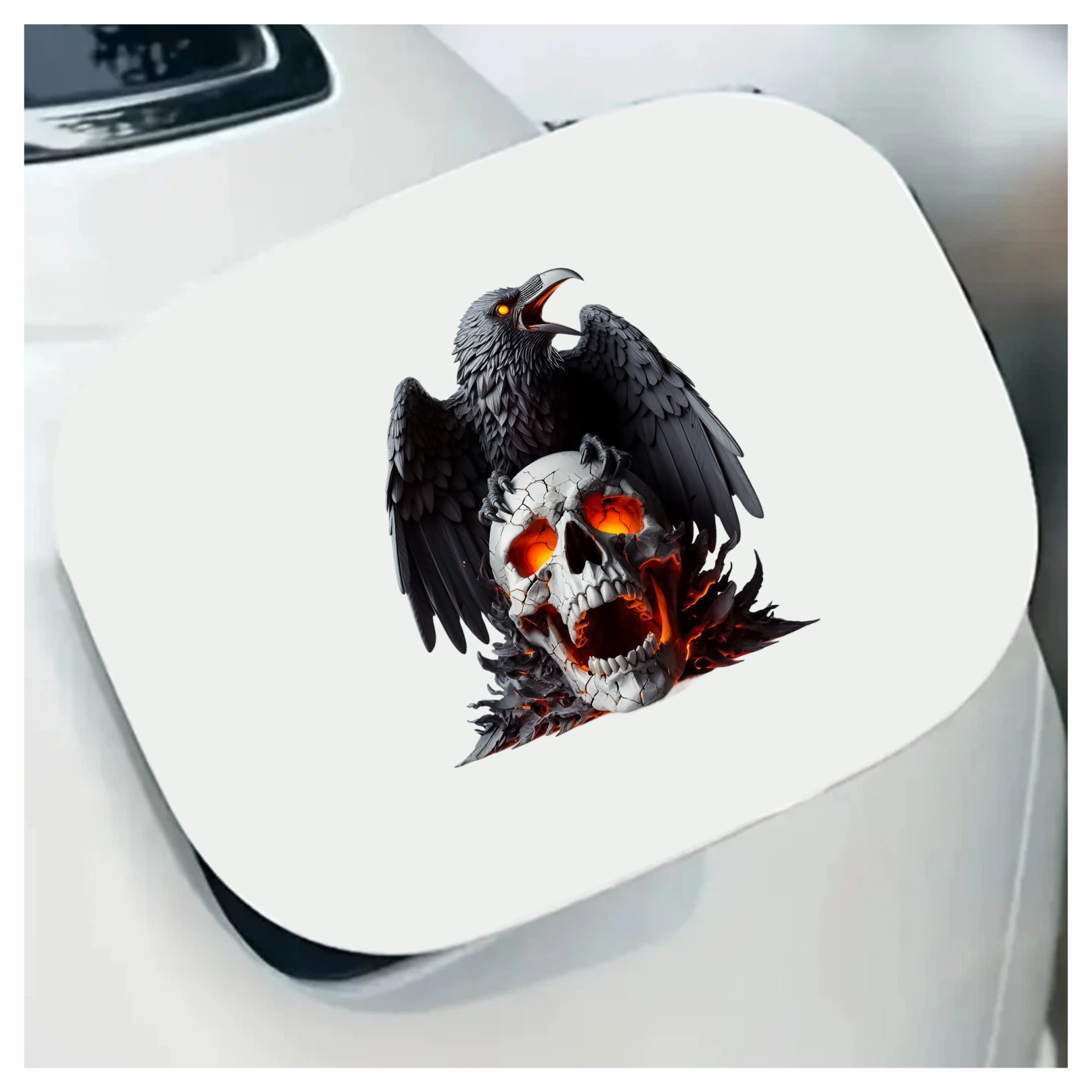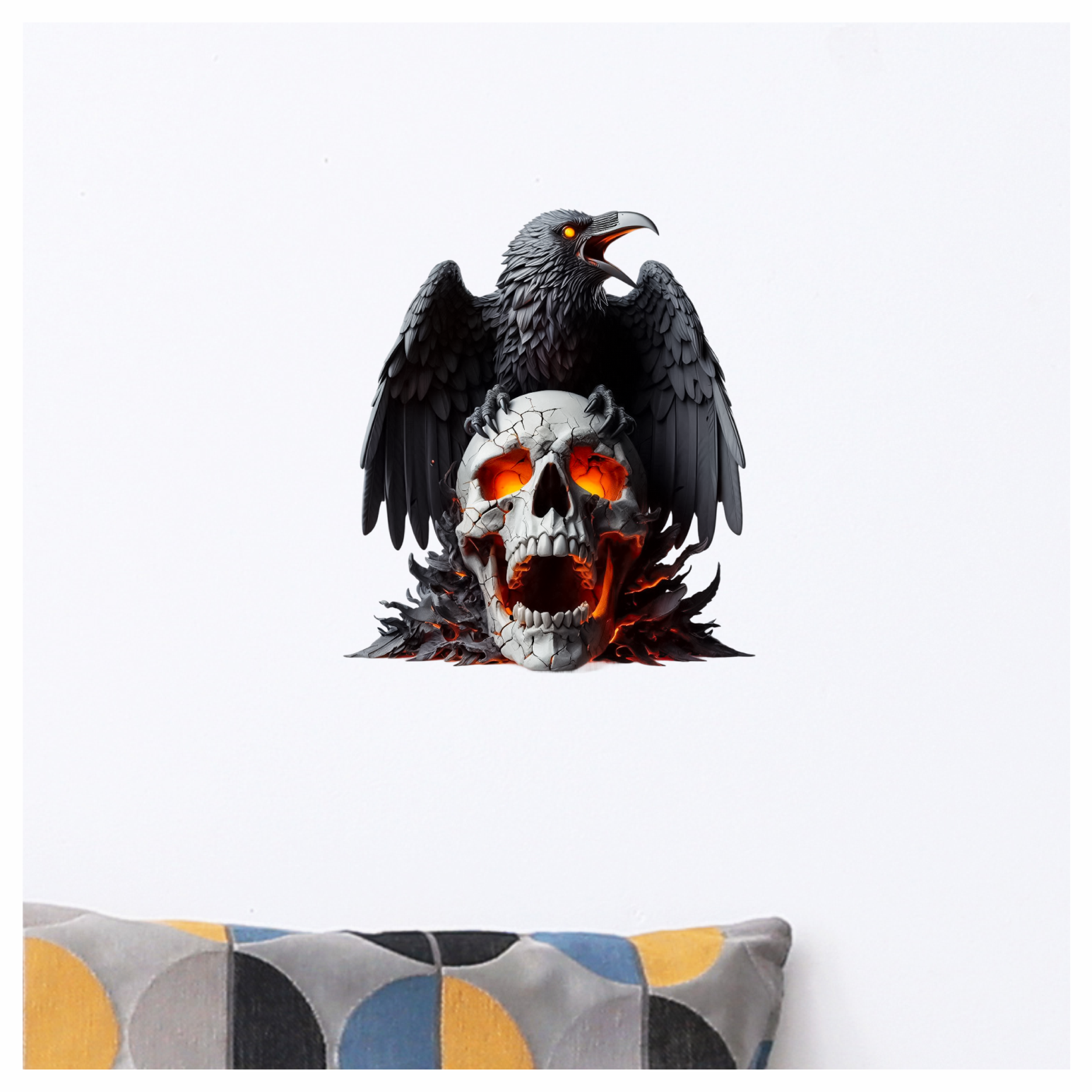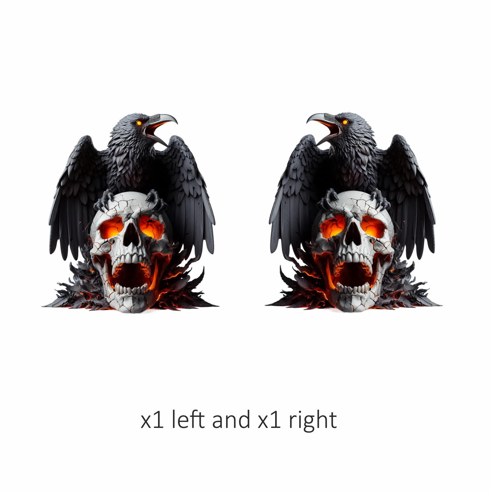 Raven Black Skull Orange Fire Vinyl Sticker Decal
