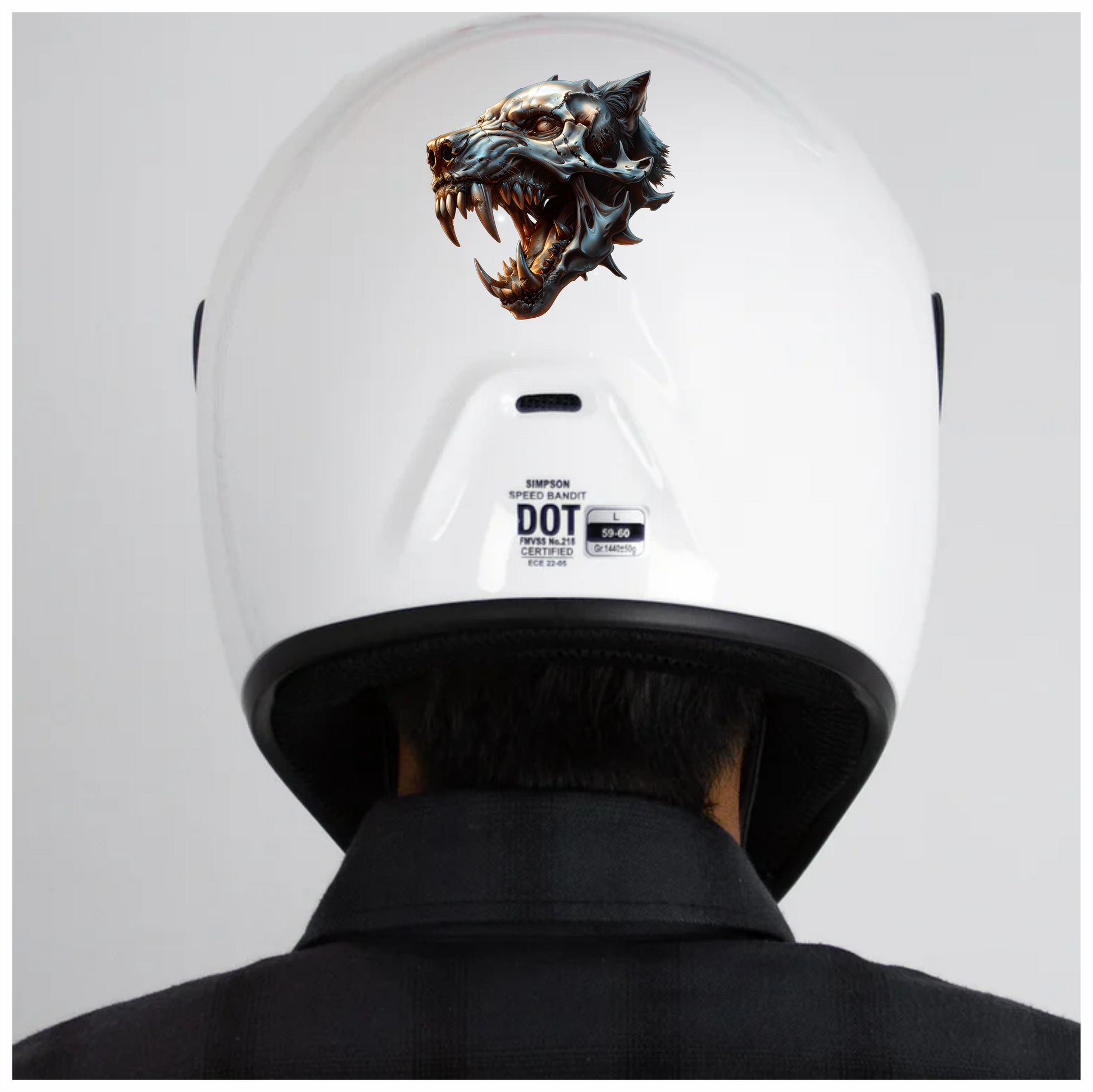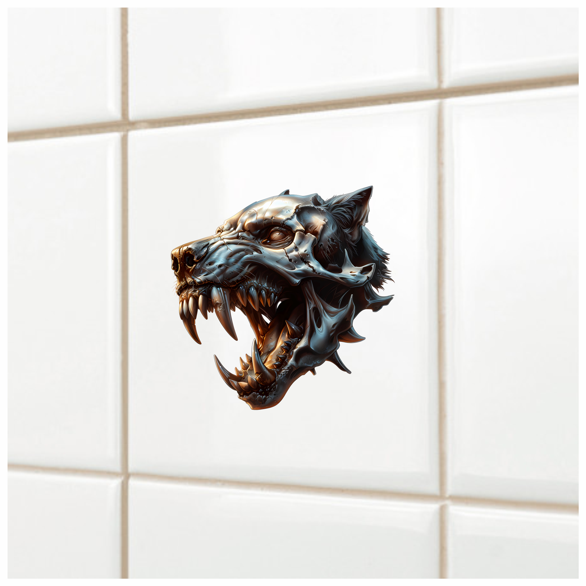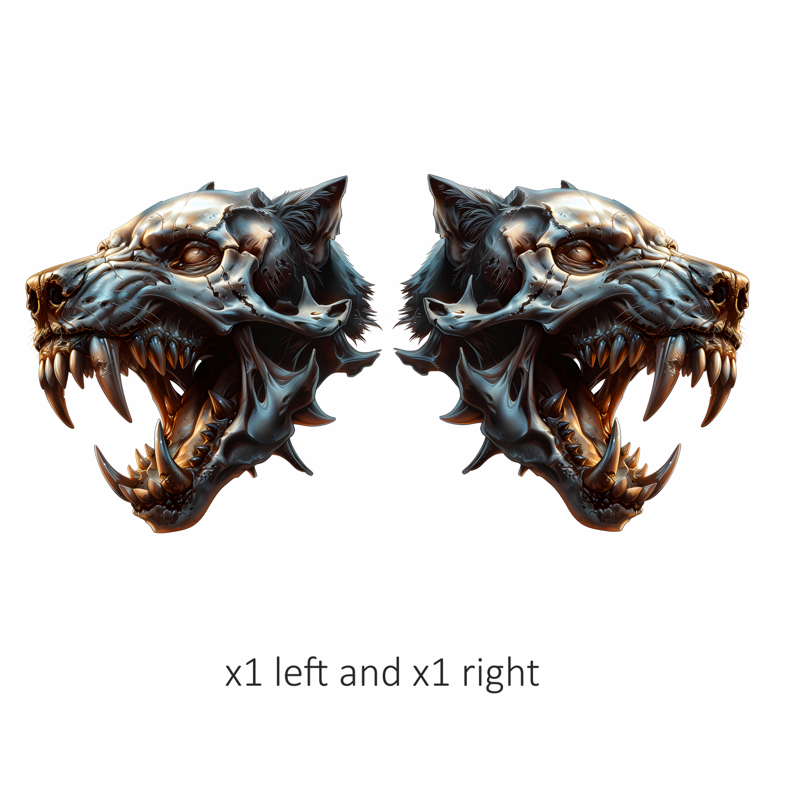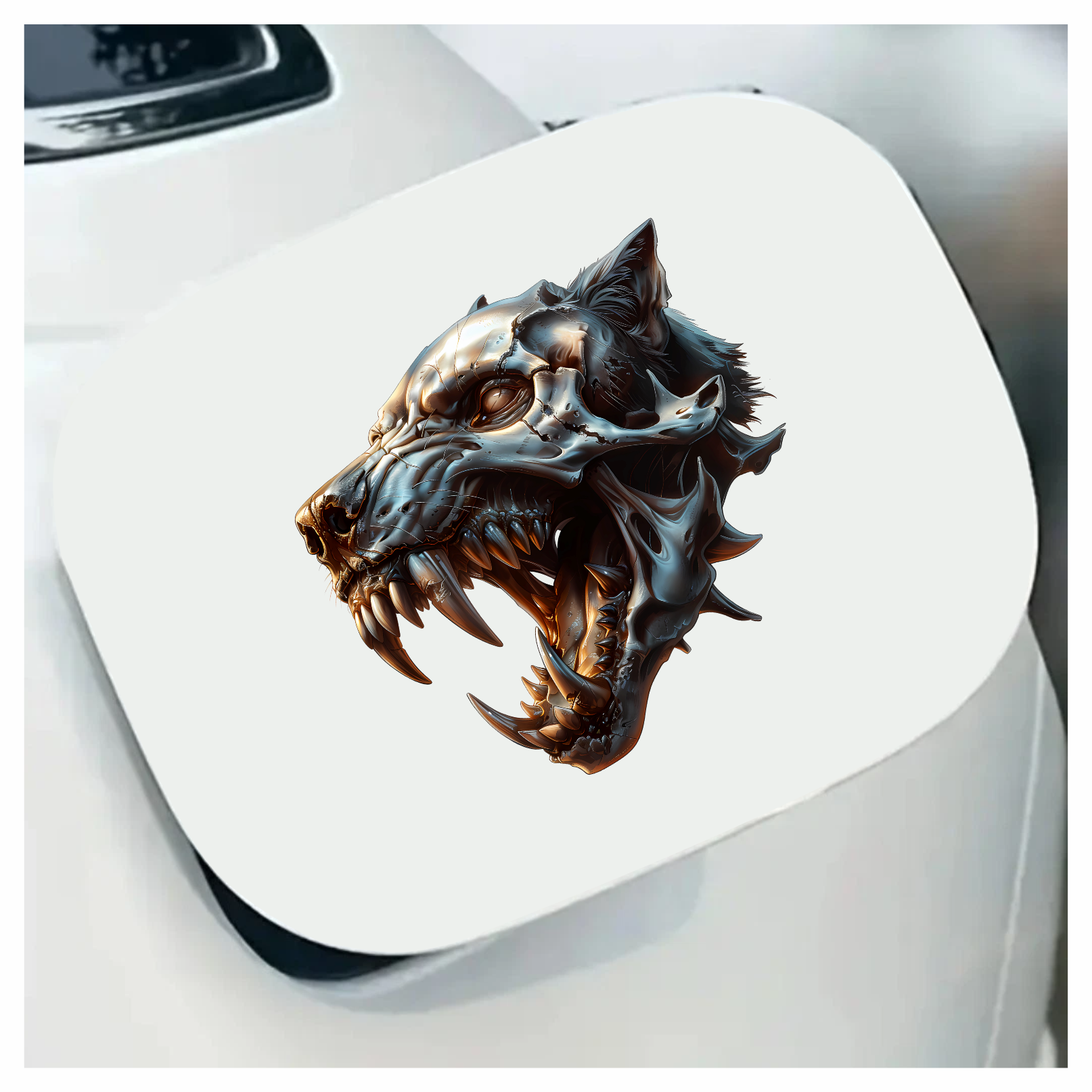 Wolf Skull Metallic Teeth Orange Vinyl Sticker Decal