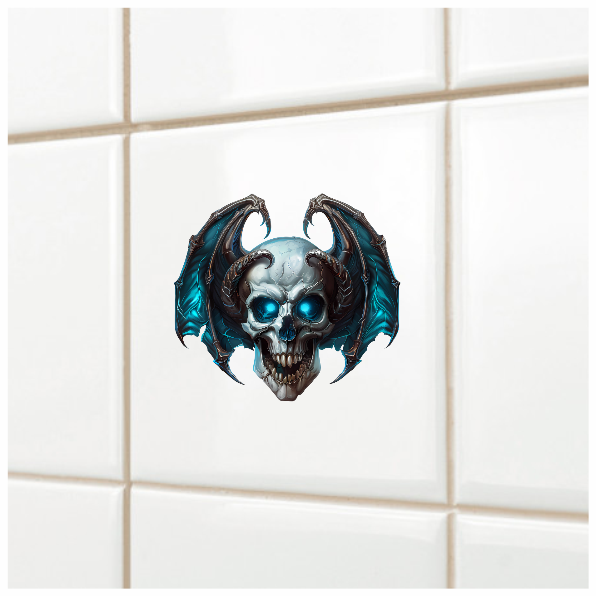 Skull Blue Wings Demon Devil Vinyl Sticker Decal