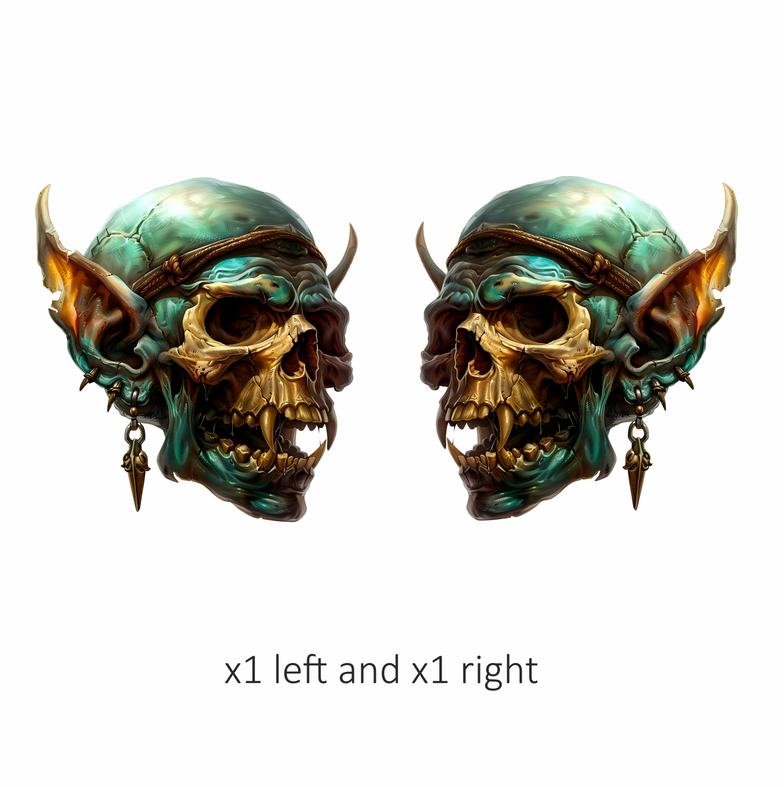 Green Skull Demon Horns Teeth Vinyl Sticker Decal