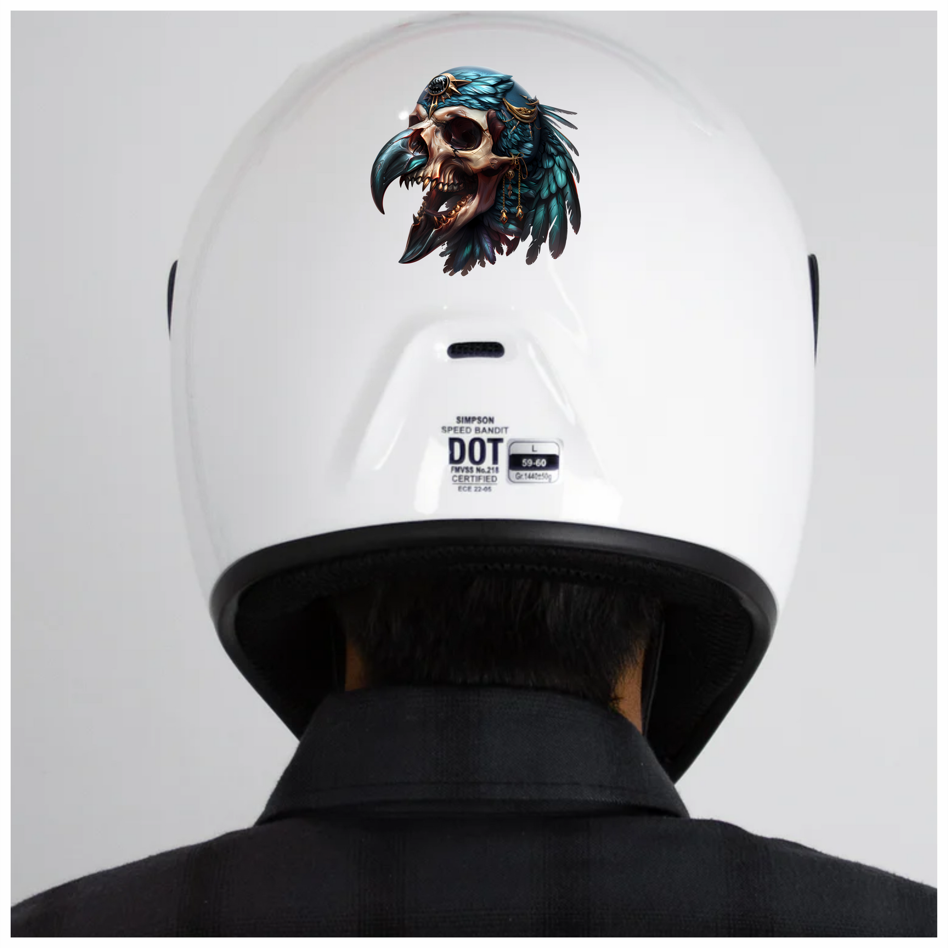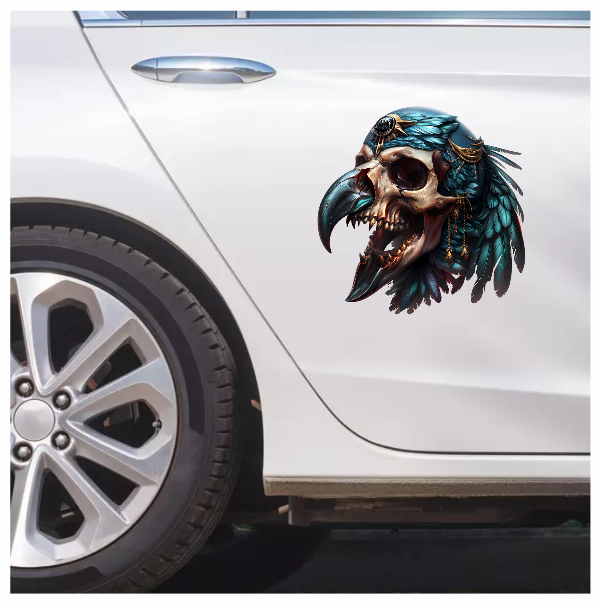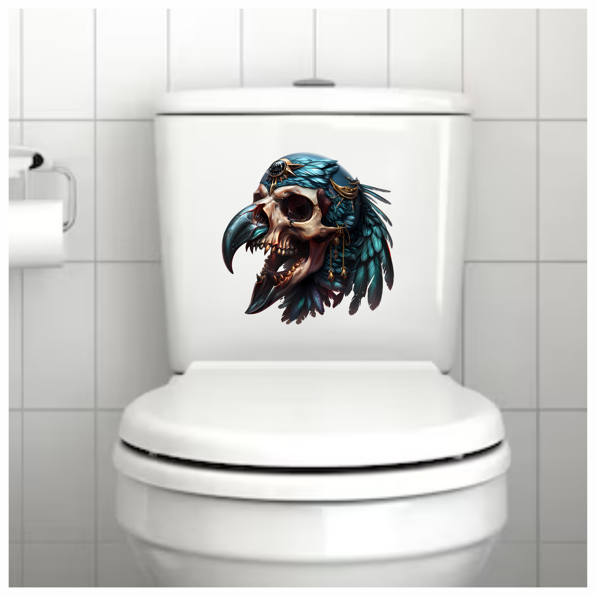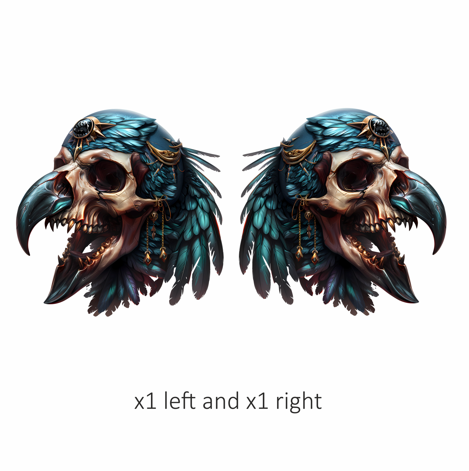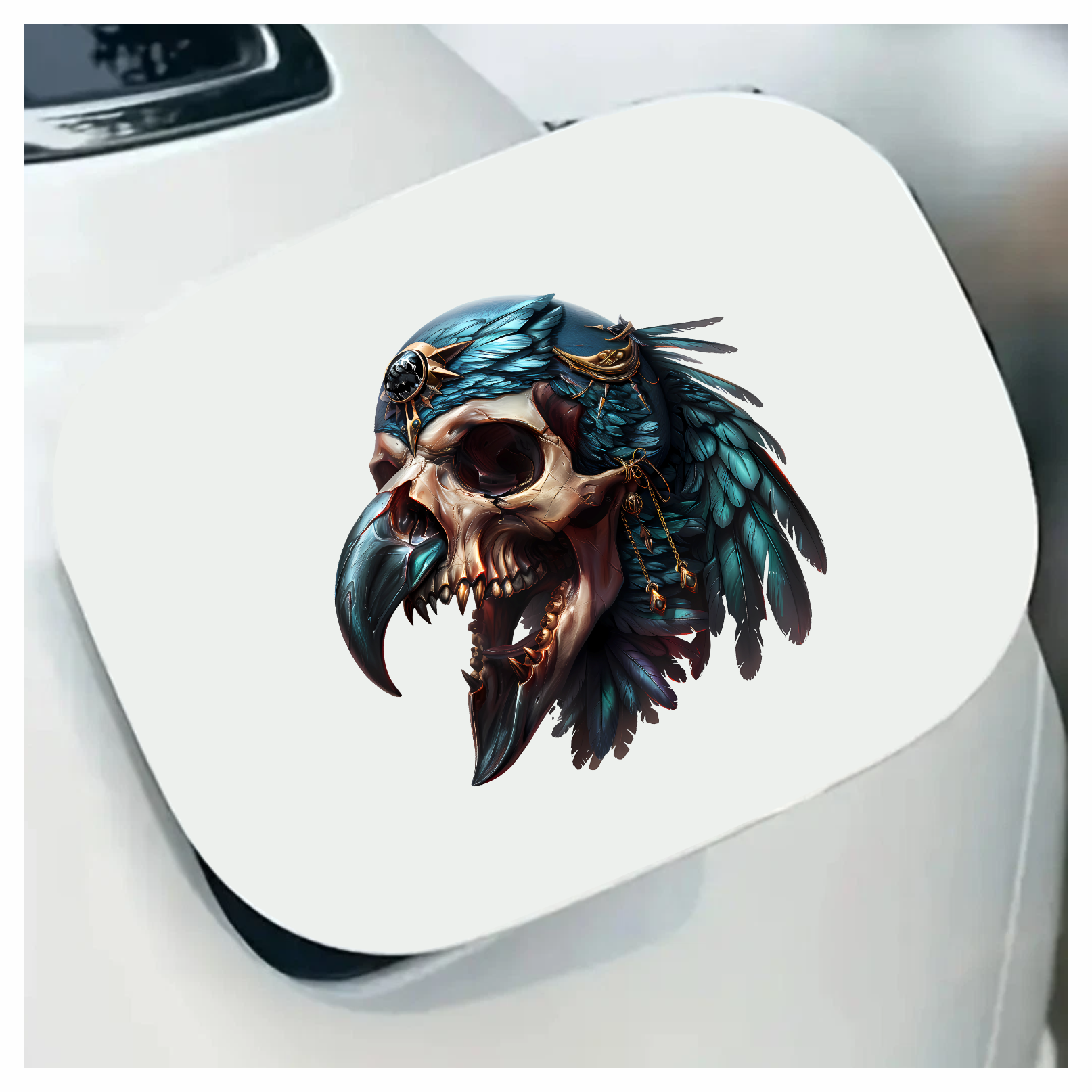 Bird Skull Blue Feathers Golden Details Vinyl Sticker Decal