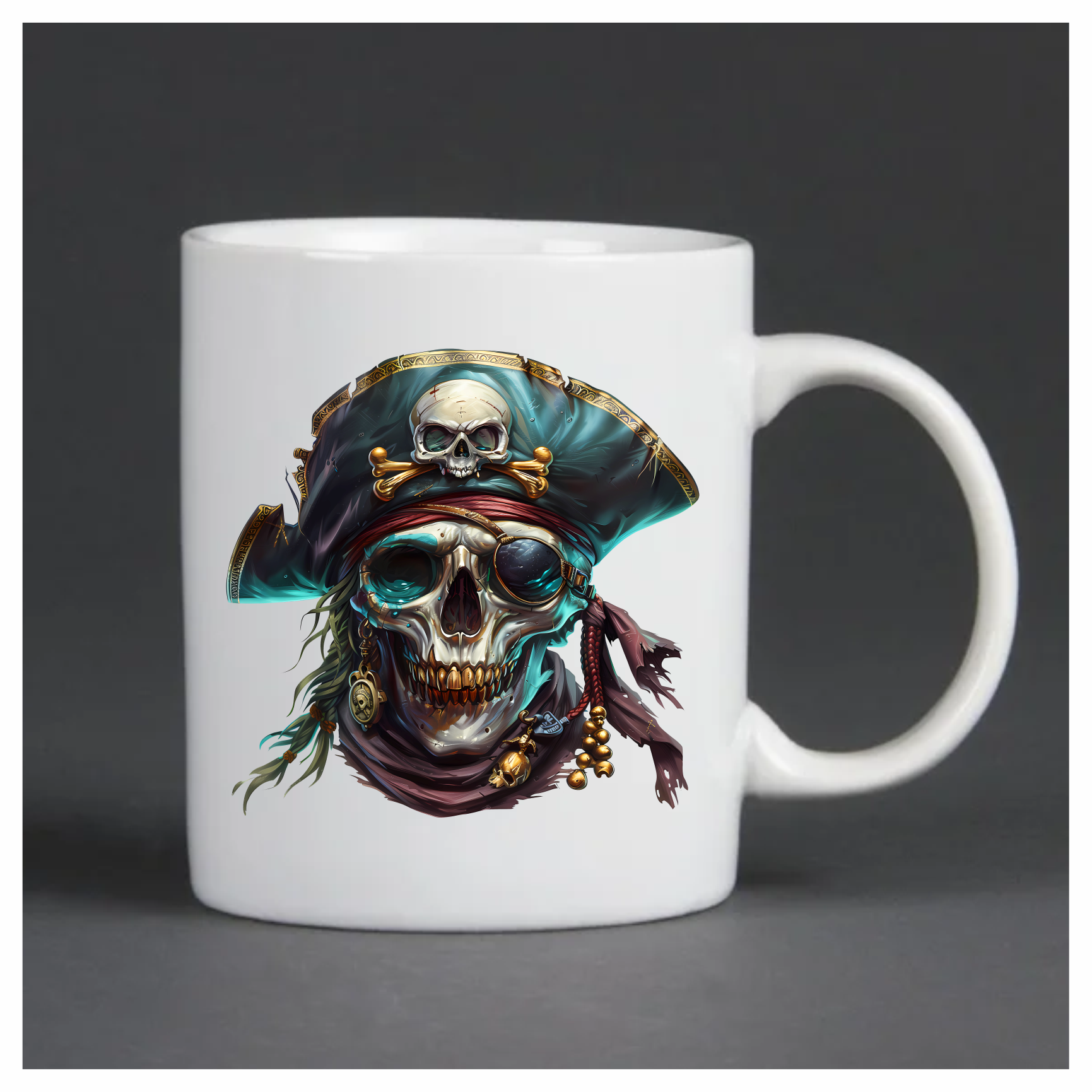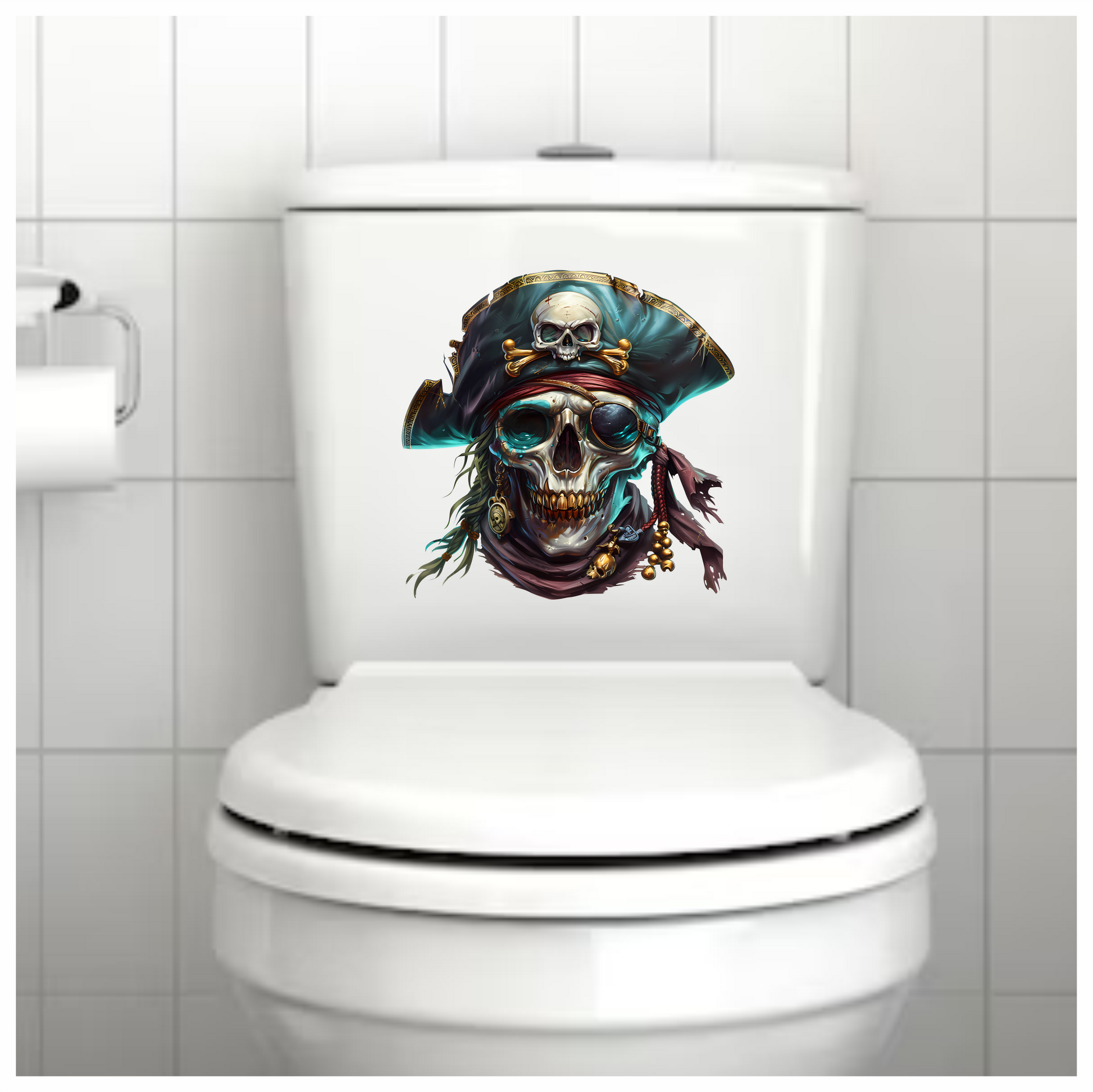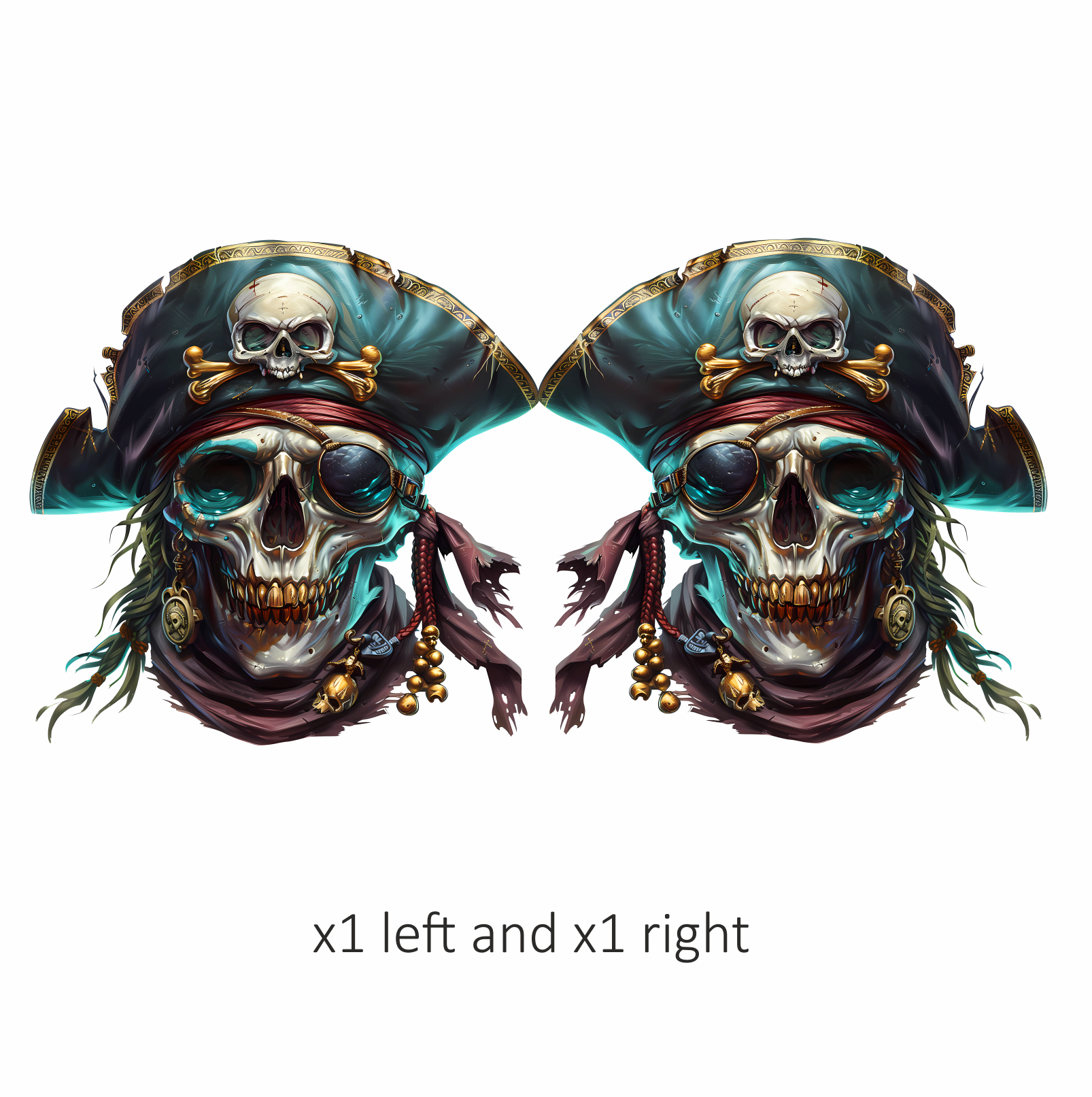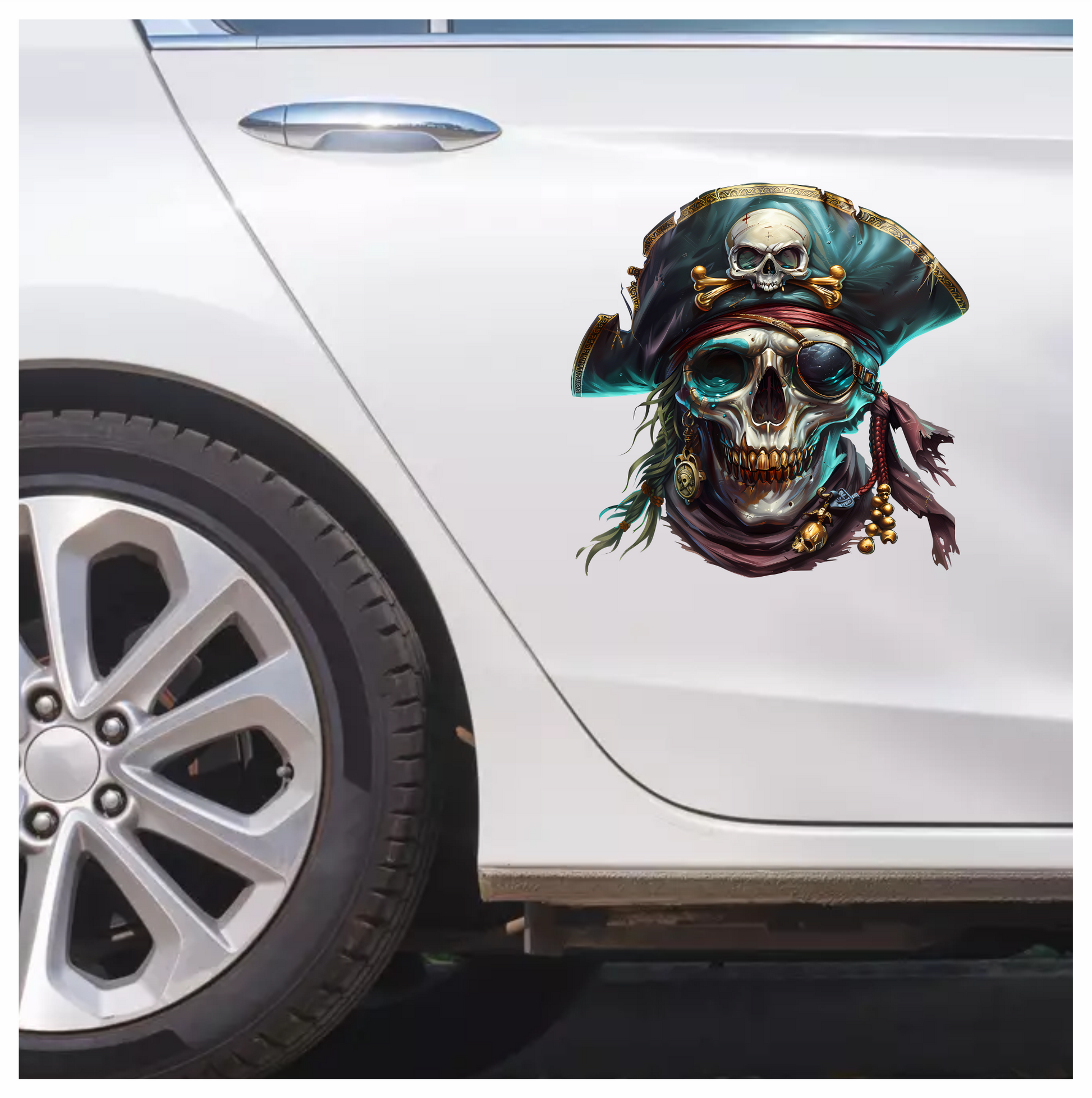 Skull Pirate Hat Gold Blue Vinyl Sticker Decal