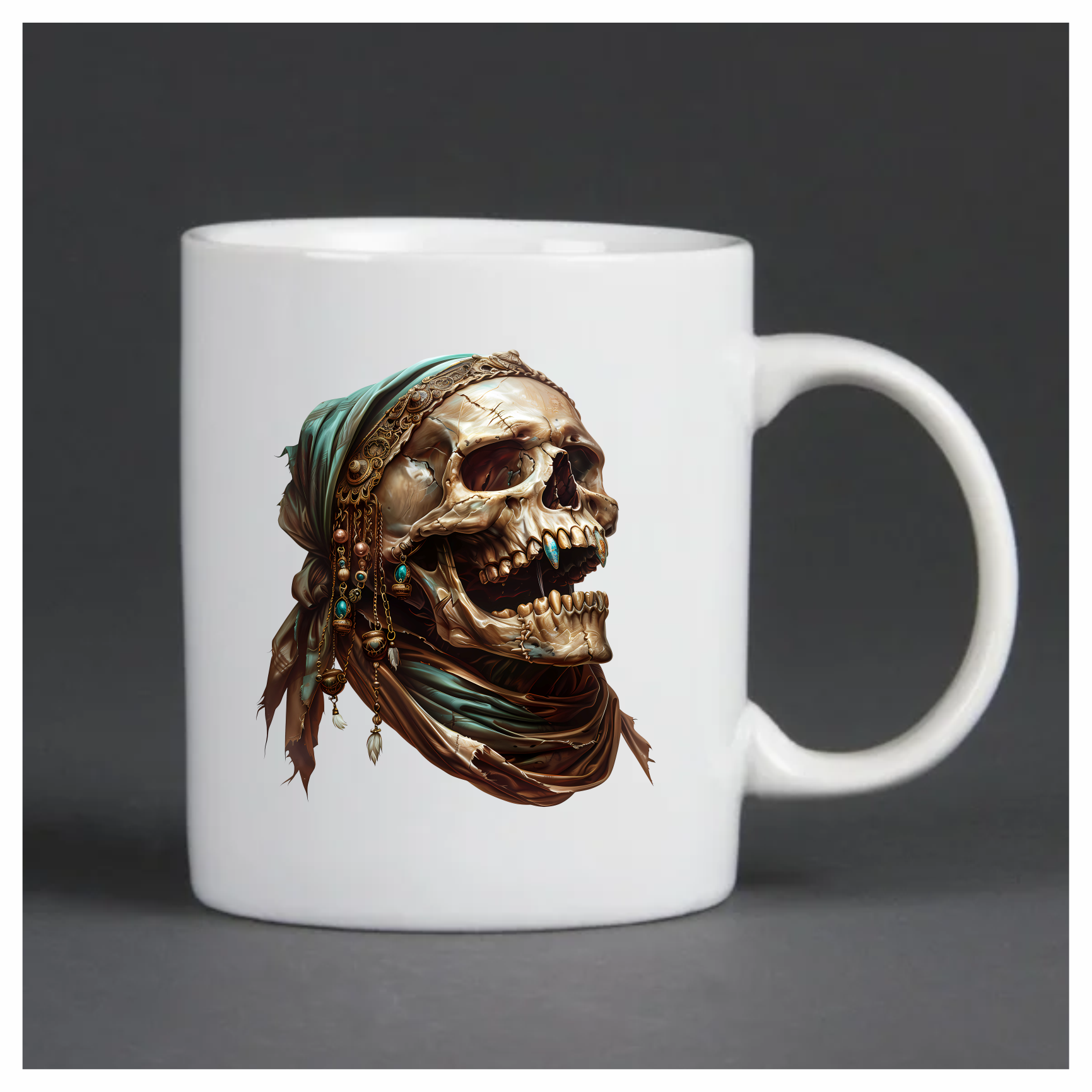 Skull, Headscarf, Jewelry, Brown, Beads, Vinyl Sticker Decal