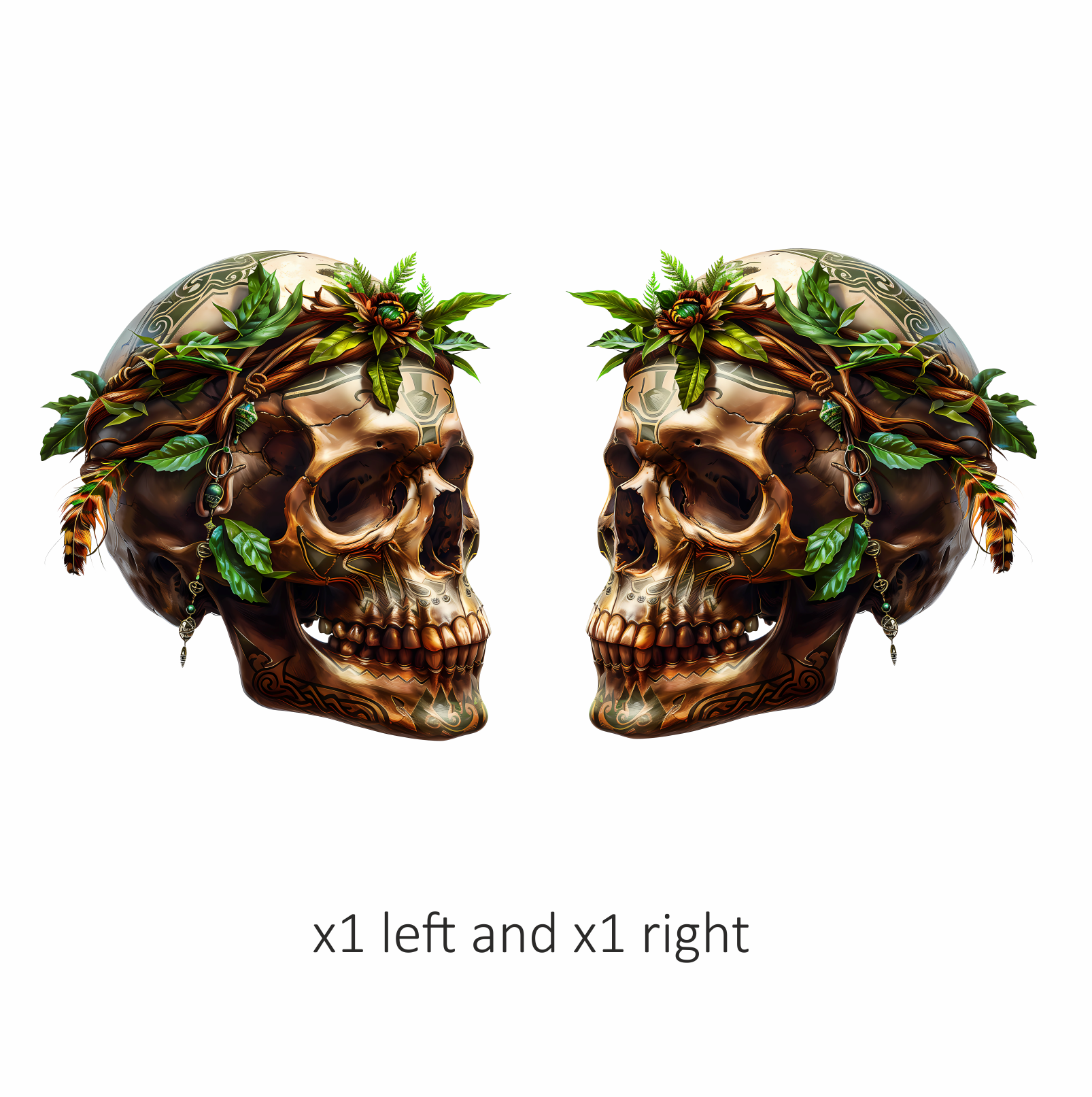 Skull Green Leaves Brown Feathers Nature Plant Vinyl Sticker Decal