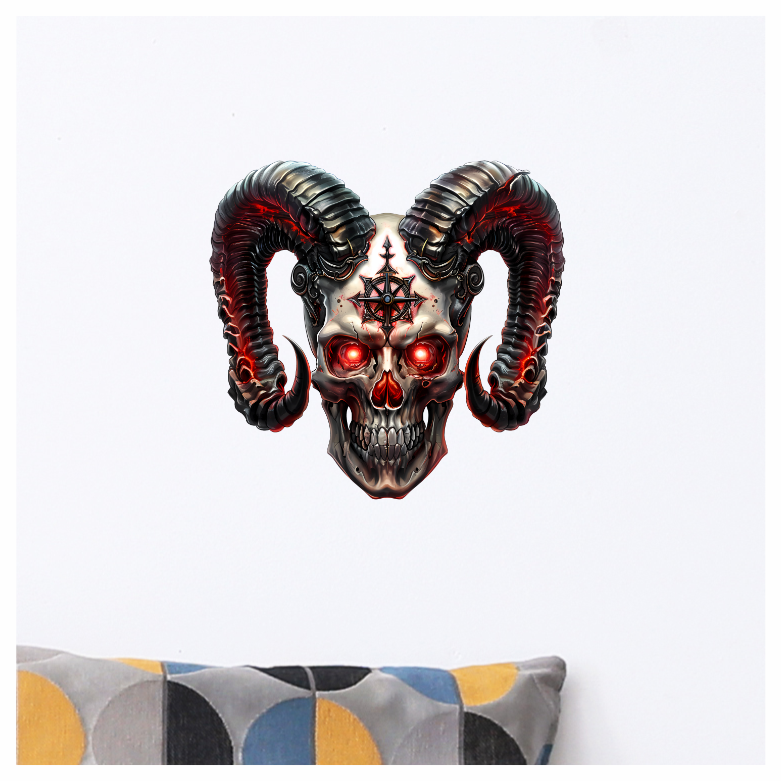 Skull Red Horns Symbol Dark Vinyl Sticker Decal