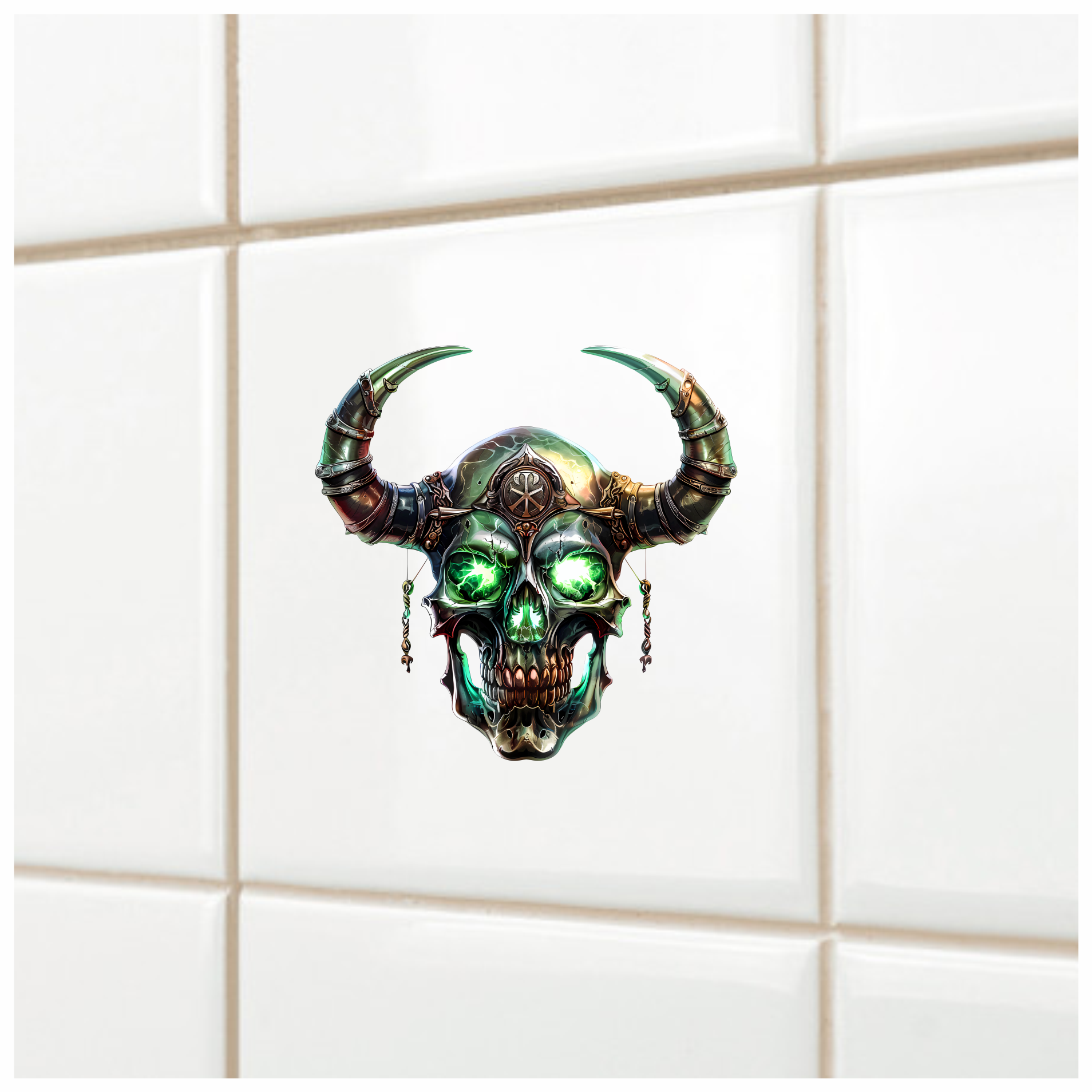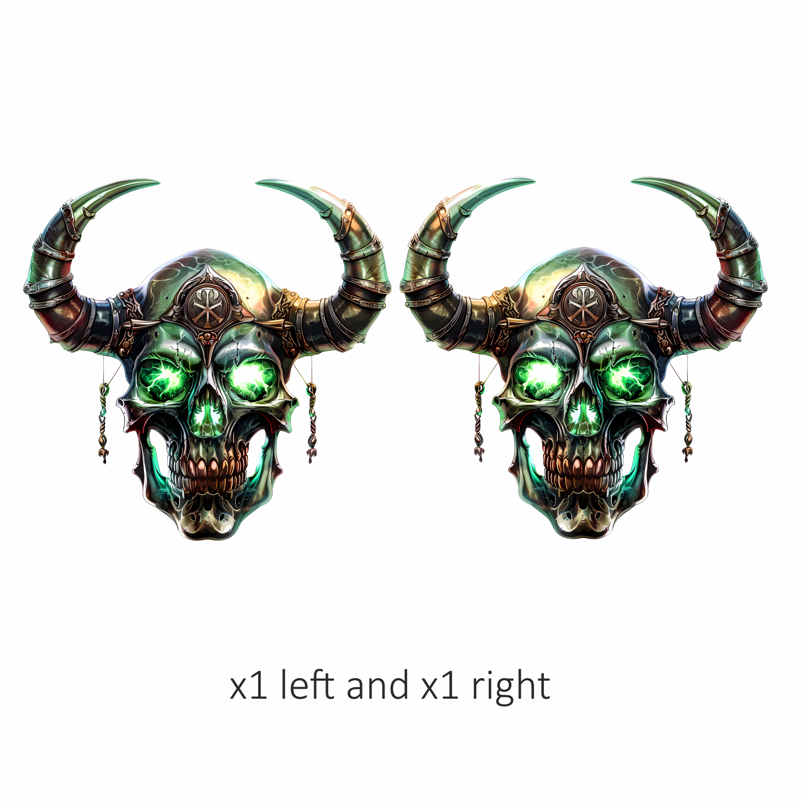 Skull Green Glowing Horns Metallic Viking Vinyl Sticker Decal