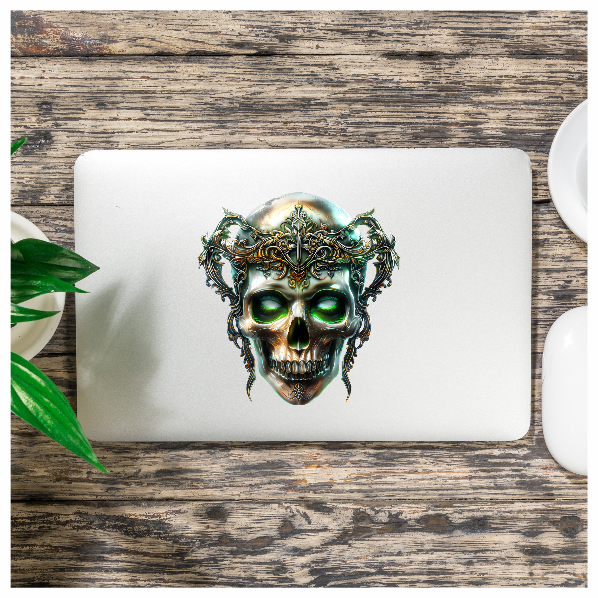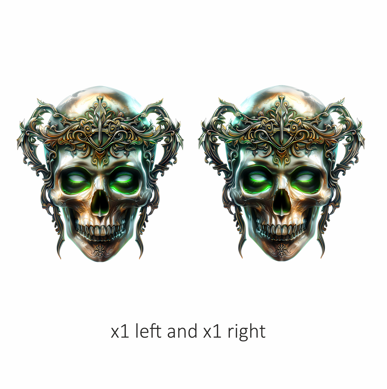 Skull Crown Green Eyes Metal Vinyl Sticker Decal