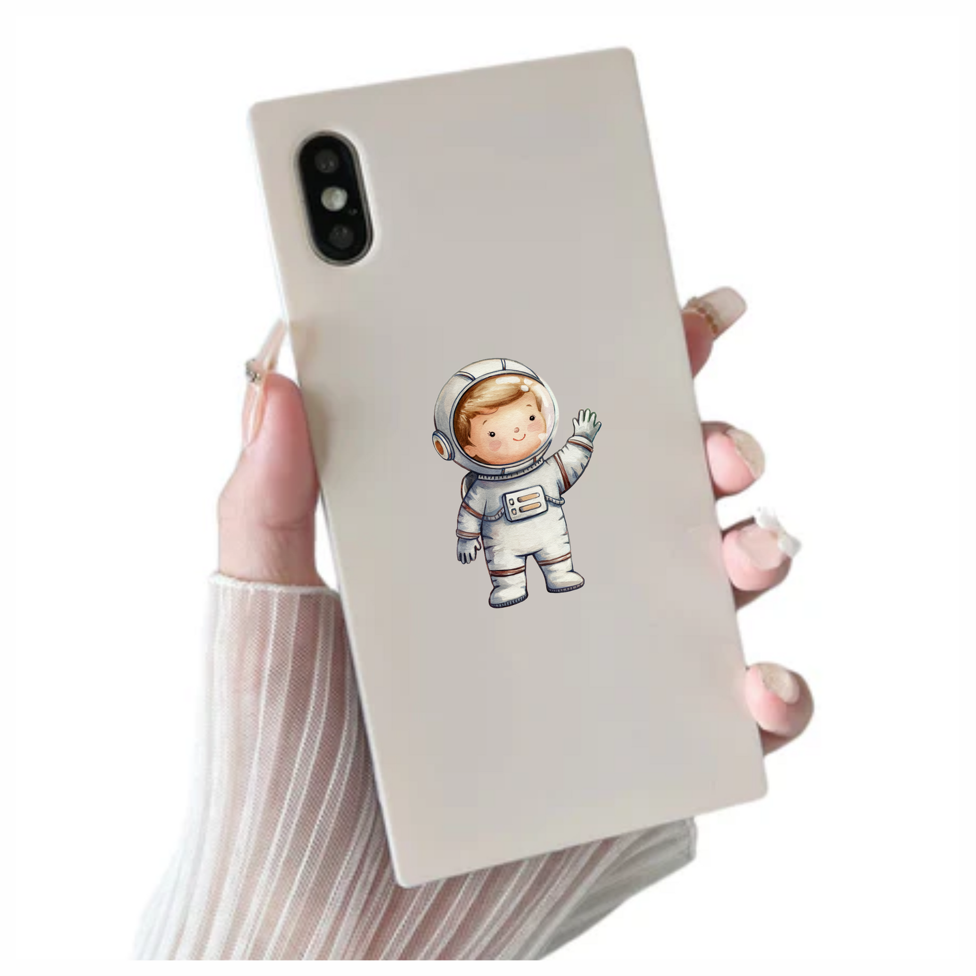 Bring a touch of space adventure to your belongings with the Astronaut Child Character White Suit Vinyl Decal Sticker. Featuring a charming young astronaut in a crisp white suit, this durable vinyl decal adds a playful and inspiring accent to laptops, water bottles, or car windows. Made from weather-resistant material, it ensures lasting color and easy application. Perfect for space enthusiasts and dreamers, this sticker lets you personalize your items with a fun, cosmic spirit.